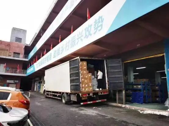 同一时间,黔货云仓·贵阳中心仓外,一辆辆厢式货车蓄势待发。仓内各品类产品分区摆放,工作人员忙着装箱、贴单、打包。
