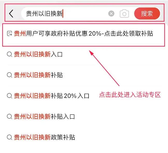 活动入口二:在京东APP搜索关键词“贵州以旧换新”进入活动专区。