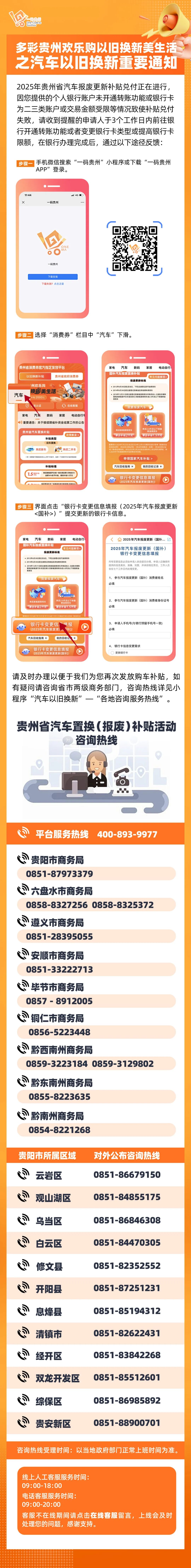 2025年贵州省汽车报废更新补贴兑付正在进行中,部分申请人因提供的个人银行账户未开通转账功能或银行卡为二、三类账户,或交易金额受限等情况致使补贴兑付失败。