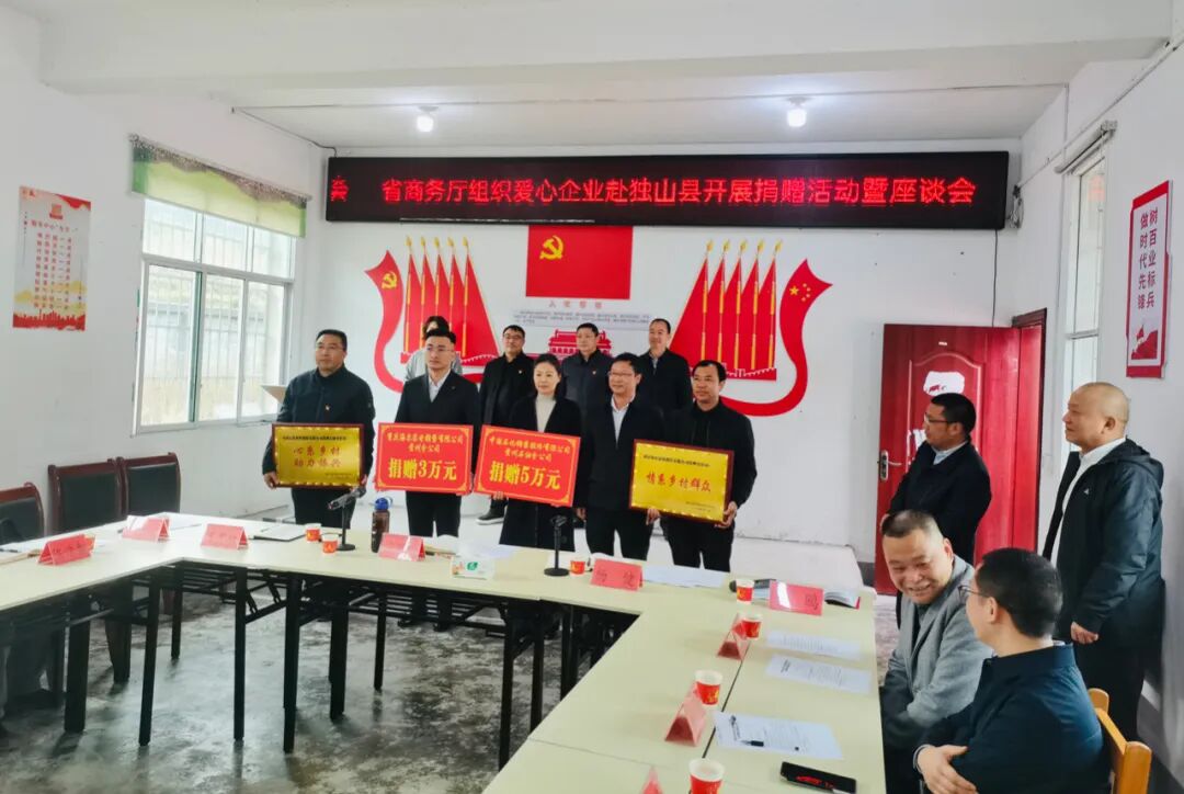 上午,吕劲松一行首先来到巴台村巴怀组老党员黎世田和监测户黎德勇家中,与两位老人促膝而谈,嘘寒问暖,详细了解他们的生产生活情况,并送去慰问品。随后出席在巴台村委会召开的企业献爱心座谈会。会上,厅机关相关处室、爱心企业负责人与驻村工作队、各村干部进行座谈交流,围绕乡村振兴工作深入探讨、共话发展。捐赠活动现场,中石化贵州分公司、一品药业等10家爱心企业分别向巴台村捐赠资金10万元、朵罗村捐赠资金8万元、花园村捐赠资金8万元、拉林村捐赠资金8万元,用于基础设施建设、产业发展、为民办实事等乡村振兴工作。吕劲松表示,此次活动不仅看到了爱心企业助力乡村振兴的担当和社会责任感,也看到了各村干部带领群众致富增收的决心和信心,感受到了各村干群一家亲、拧成一股绳,携手奋进、拼搏向前的蓬勃力量。座谈会由杨健一巡主持,厅外贸处、市建处、流通处、运行处,百泉镇政府以及我厅对口帮扶的巴台村、朵罗村、拉林村、花园村党支部书记参加。