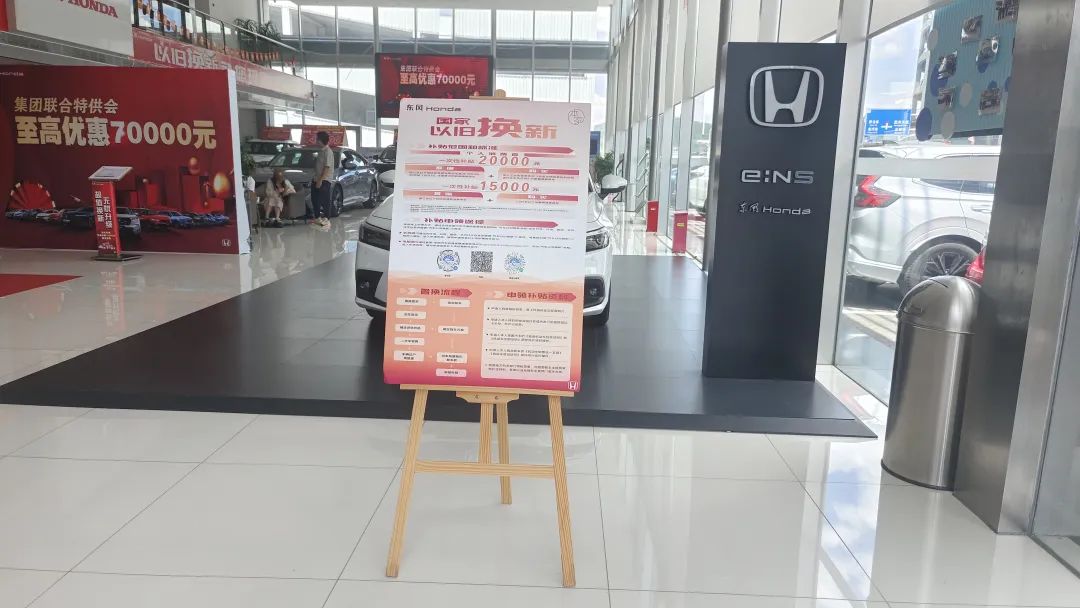 在孟关汽贸城的贵阳三喜汽车销售有限公司门店,经营着东风本田品牌的各类车型,月销售100台,目前已通过该门店享受到政府以旧换新补贴政策的有30台车。