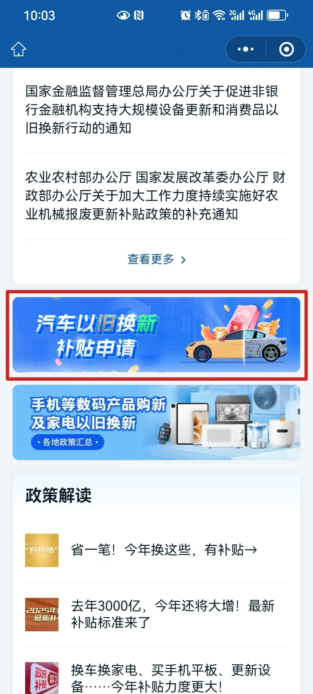 国务院客户端小程序“大规模设备更新消费品以旧换新”专区,