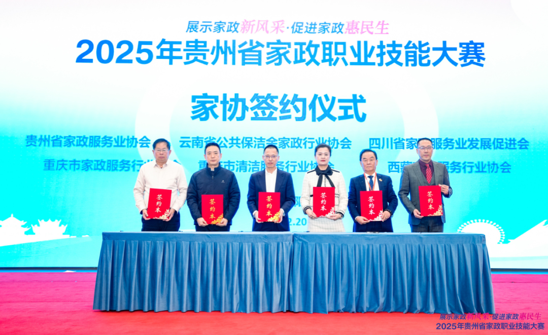 12月21日,历时两天的2025年贵州省家政职业技能大赛在贵阳圆满闭幕。本次大赛由省商务厅、省妇联、省发改委、省人社厅联合主办,省家政服务业协会承办,以“展示家政新风采·促进家政惠民生”为主题,创新构建“赛事搭台、就业赋能、区域联动”多元格局,同步启动生活服务招聘季贵州省专场,并举行西南五省市区家政服务业协同发展签约仪式,实现了以赛促训、以业惠民、区域协同的多重目标。