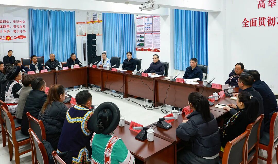 乌蒙深处年味正浓。习近平总书记2021年2月3日亲临黔西市新仁乡化屋村考察,亲切看望慰问各族干部群众,充分体现人民领袖爱人民、人民领袖人民爱。在领袖关心关怀下,化屋村“十四五”时期展现新变化新面貌新气象。徐麟来到化屋村,察看村容村貌,调研苗绣生产车间,走进赵玉学等村民家中交谈,勉励乡亲们牢记嘱托、感恩奋进,在“十五五”时期让产业更兴旺、环境更美丽、生活更红火,叮嘱守正创新保护传承民族传统文化,扎实推进移风易俗、培育文明新风。在村委会,化屋干部群众深情重温习近平总书记考察时的幸福时刻,徐麟深情讲述总书记考察肇兴侗寨时的感人场景,共同体悟总书记谆谆教诲。徐麟说,五年来极不平凡的历程再次充分证明,什么时候把习近平总书记重要讲话重要指示精神学习得越好、理解得越深、贯彻得越有力,发展成效就越显著。迈步新征程,全省上下要坚定沿着习近平总书记指引的方向奋勇前进,坚持以高质量发展统揽全局,奋力在中国式现代化进程中展现贵州新风采。